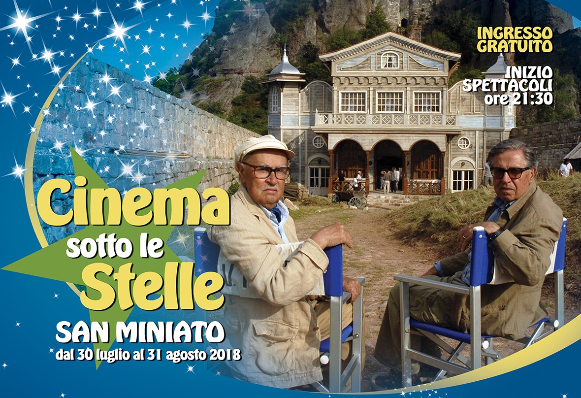 Due gli appuntamenti dedicati ai fratelli Taviani: mercoledì 22 agosto alla Casa Culturale di San Miniato Basso verrà proiettato Maraviglioso Boccaccio mentre giovedì 23 agosto in piazza Duomo a San Miniato è la volta de La masseria delle allodole. Venerdì 24 agosto alla Casa Culturale a San Miniato Basso Mister felicità, per la regia di Alessandro Siani, mentre lunedì 27 agosto, sempre alla Casa Culturale a San Miniato Basso, Assassinio sull'Orient Express per la regia di Kenneth Branagh. Ultimi due appuntameni a Ponte a Egola al Circolo Arci Pannocchia: mercoledì 29 agosto Il libro di Henry per la regia di Colin Trevorrow e venerdì 31 agosto Pirati dei Caraibi 5 per la regia di Joachim Ronning.