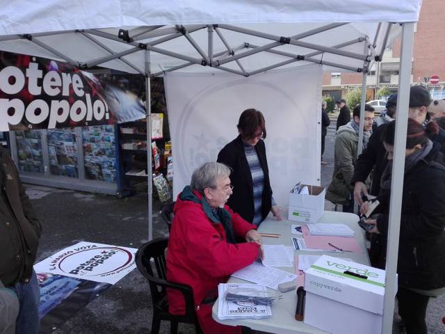 Potere al Popolo deve raccogliere 25.000 firme in tutta Italia, entro il 28 gennaio, per potersi presentare alle elezioni. Banchetti per firmare sono stati programmati in tutta Pisa: martedì 23 gennaio mattina alla Coop Porta a Mare e pomeriggio alla Coop di Cisanello; mercoledì 24 gennaio mattina in piazza Garibaldi e pomeriggio in piazza del Carmine, giovedì 25 gennaio mattina alla Coop Cisanello e il pomeriggio in Corso Italia.