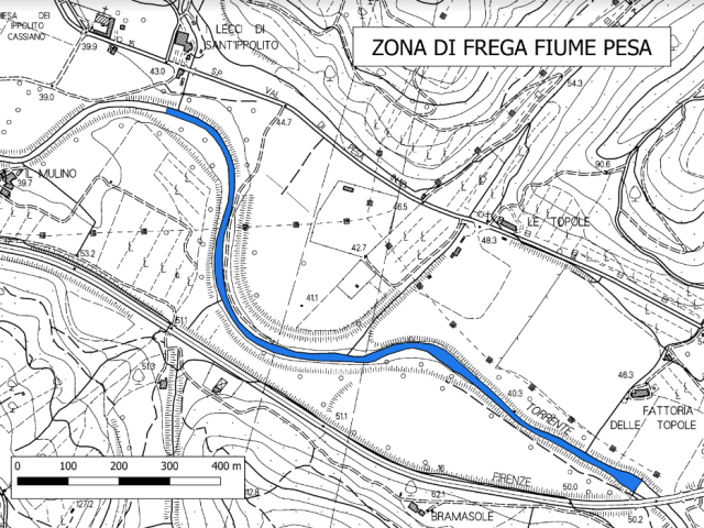 Per questa ragione è stata ampliata la zona di frega esistente in bassa val di Pesa nei pressi delle Topole (uscita di Ginestra F.na della FIPILI) estendendola a valle fino ai Lecci di S.Ippolito (in corrispondenza con la via di Piandaccoli).