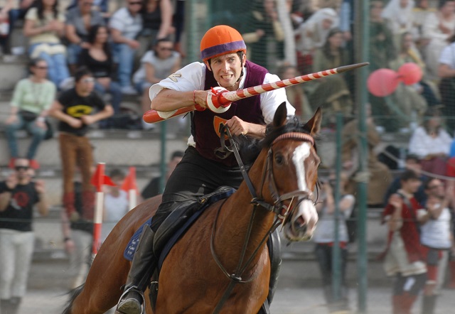A San Vincenzo (dirige la tenzone Roberto Parnetti, già Maestro di Campo nella giostre di Bagno a Ripoli, Sulmona, Monselice, Calvi dell’Umbria) vedremo in azione Jonathan Anselmicchio di Amelia che fa parte del Terziere Santa Maria di Narni ed ha al suo attivo le partecipazioni al Palio dei Colombi di Amelia, al Palio delle Contrade di Calvi dell’Umbria ed alla Corsa all’Anello storica di Narni; Lorenzo Desimone di Bibiano cavaliere di riserva della Contrada Trinità di San Secondo Parmense e che, nel 2017, ha vinto le Giostre agli anelli di Castell’Arquato e Cavriago “sfiorando” il successo anche nella Giostra dè lo biscione di Grazzano Visconti (PC); Maurizio Frulio di Arezzo cavaliere titolare della Contrada Castell’Aicardi di San Secondo Parmense e che oltre a gareggiare in varie Giostre e Quintane fa parte anche del Gruppo Cavalieri di Arezzo sodalizio che partecipa, in rappresentanza dell’Italia, a tornei internazionali cavallereschi; Guido Gentili di Sarteano cavaliere che ha corso e vinto la Giostra del Saracino di “casa” e partecipa a numerose giostre “non storiche” prossimo protagonista della Giostra dei Rioni di Olmo; Willer Giacomoni di Faenza, cavaliere titolare della Contrada Grillo del Palio delle Contrade di San Secondo Parmense e che ha nel suo palmares numerose vittorie tra cui il Niballo di Faenza e le Quintane di Foligno ed Ascoli; Enrico Giusti, cavaliere titolare del Sestiere di Sant’Emidio di Ascoli Piceno e della Contrada Dragonda di San Secondo Parmense, e che vanta successi nella Giostra del Saracino di Arezzo, nel Palio delle Contrade di San Secondo Parmense e nella Giostra della Stella di Bagno a Ripoli; Alessandro Lombardi di Pistoia, cavaliere pluriesperto di giostre all’anello avendo corso in molte piazze tra cui Pistoia (Giostra dell’Orso), Sulmona (Giostra Cavalleresca Europea) e Monselice (Giostra della Rocca); Alberto Liverani di Faenza che ha al suo attivo la partecipazione alla Bigorda di Faenza, alla Giostra della Rocca di Monselice, il Palio di Mercato Saracino e, nel 2016, ha ottenuto una doppia vittoria alla Giostra dei Rioni di Olmo conquistando il successo e laureandosi anche miglior cavaliere del torneo.