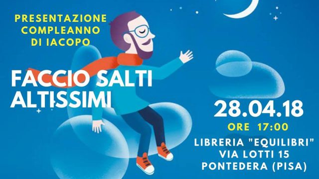 In occasione del Compleanno di Iacopo Melio la libreria "Equilibri" di Pontedera (PI) organizza una presentazione speciale del suo ultimo libro "Faccio salti altissimi" (Mondadori): appuntamento a Sabato 28 Aprile, ore 17:00.