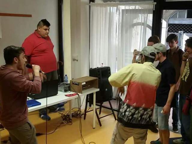 I ragazzi hanno potuto così avvicinarsi alla storia della cultura hip-hop (con la proiezione di alcuni video “a tema”) e poi confrontarsi facendo tesoro delle conoscenze già acquisite nel corso del progetto. La serata è poi proseguita con una merenda e un’improvvisazione rap e beatbox.