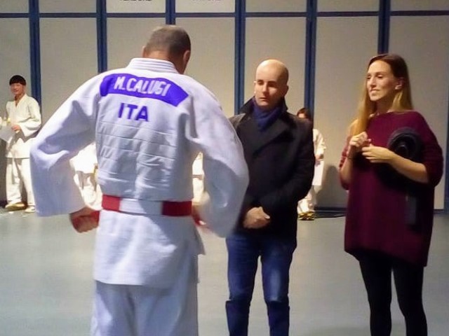 A questo proposito vogliamo spendere alcune parole per quanto riguarda il traguardo raggiunto dal Maestro Calugi. Come tutti sanno nel Judo le cinture nere si dividono in Dan, ma è proprio a partire dal sesto che i praticanti di questa disciplina vengono considerati “Alti Gradi” e, per distinguere il livello da essi raggiunto, possono indossare, al posto della classica Cintura Nera, una cintura BIANCA e ROSSA.