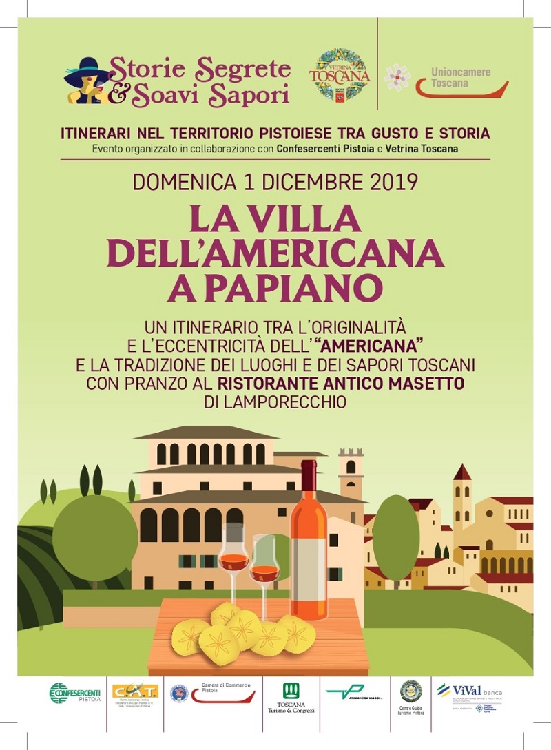 Protagonista dell’itinerario di domenica (1° dicembre) sarà la villa dell’Americana a Papiano. A metà dell’Ottocento la nobildonna americana Laura Towne Merrick, che già risiedeva a Firenze da qualche anno, acquistò e ristrutturò la villa in località Papiano per farne la sua residenza estiva. Da allora l’edificio divenne noto ai paesani come “villa dell’Americana”. Laura Towne Merrick era solita trascorrere qui il suo tempo in compagnia dei suoi ospiti e dedicandosi ai suoi numerosi interessi: la fotografia, l’antiquariato, il collezionismo ma anche attività filantropiche a favore degli abitanti del paese. La villa, che custodisce intatti gli arredi, i decori e le collezioni originarie, costituisce ancora oggi una preziosa testimonianza dell’eccentrica personalità della sua antica proprietaria. Prima della visita alla villa, piccolo giro al borgo di Porciano con visita della chiesa di San Giorgio e del museo della tradizione contadina gestito dalla Proloco del posto. A conclusione dell’itinerario pranzo tipico toscano a Lamporecchio al ristorante Antico Masetto.