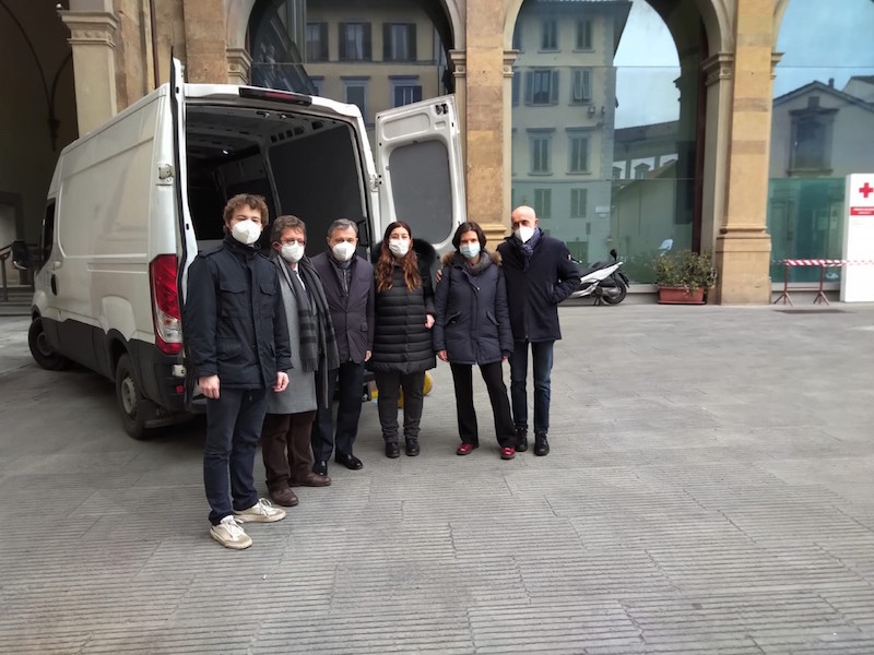Il prezioso carico di 26 scatole è stato prelevato questa mattina dal magazzino della Fondazione in via Bufalini e trasferito sul furgone che lo smisterà per lo stoccaggio, una metà presso la Misericordia di Campi Bisenzio, l’altra presso la Fondazione Pas, all’Isolotto a Firenze. Alla partenza del furgone da piazza Santa Maria Nuova verso i vicini Comuni della cintura fiorentina, c’erano il direttore della Fondazione CR Firenze, Gabriele Gori, il direttore sanitario della Ausl Toscana centro, Emanuele Gori, la presidente della Società della Salute fiorentina nord ovest, Camilla Sanquerin, il sindaco di Signa, Giampiero Fossi, l’assessore alle politiche sociali del Comune di Lastra a Signa, Matteo Gorini e l’assessore alle politiche educative di Campi Bisenzio e presidente della Conferenza zonale dell’Istruzione, Monica Roso.