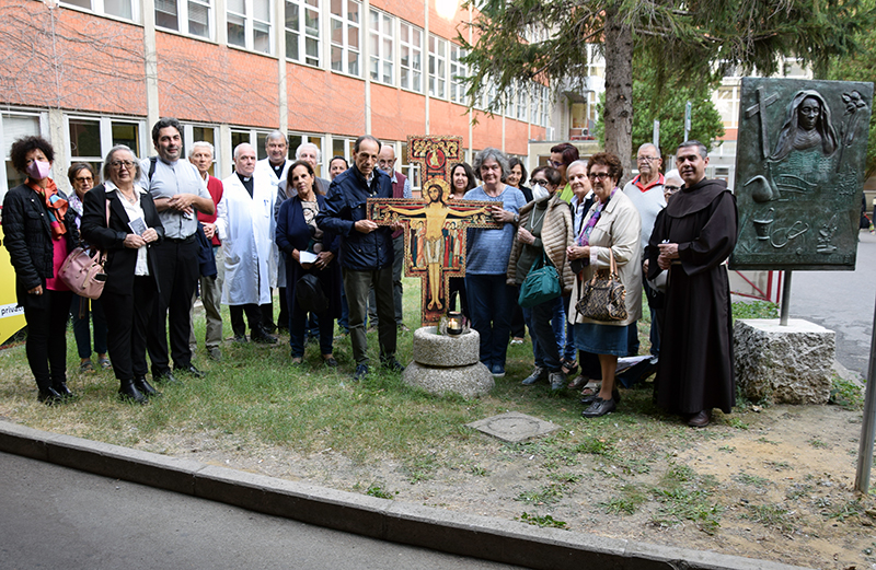 Il momento di preghiera si è celebrato nei pressi dell’ingresso dell’ospedale, accanto alla statua di Santa Caterina, e la croce è stata successivamente portata all’interno della Cappella Ospedaliera, dove è stata celebrata la Santa Messa.