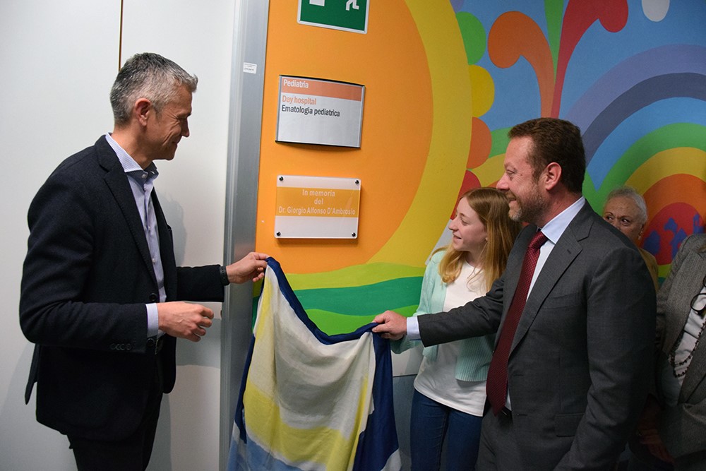 Una targa in memoria del professor Giorgio Alfonso D’Ambrosio, scomparso nel 2017, già responsabile della sezione di Oncoematologia pediatrica dell’Azienda ospedaliero-universitaria Senese e docente del corso di laurea in Medicina dell’Università degli Studi di Siena. È quella apposta all’ingresso della Sala Day Hospital di Oncoematologia Pediatrica. Il luogo dedicato alla memoria del professor D’Ambrosio è quello utilizzato per le cure dei piccoli pazienti che si trovano a lottare, insieme alle loro famiglie, contro malattie oncologiche, all’interno della UOC Pediatria, diretta dal professor Salvatore Grosso. La targa è stata ideata dal personale sanitario della Pediatria. Alla cerimonia hanno partecipato, tra gli altri, il professor Guido Morgese, il professor Rosario Berardi ed il professor Paolo Balestri, già direttori della Pediatria dell’Aou Senese, alla presenza del direttore generale Antonio Barretta e del personale del Dipartimento della Donna e dei Bambini. Nell’occasione è stato ricordato anche il grande lavoro fatto negli anni, proprio a partire dall’esperienza del professor D’Ambrosio, con l’ATL Siena, Associazione Toscana contro le Leucemie e i tumori del bambino, rappresentata dalla presidente Katia Landi.
