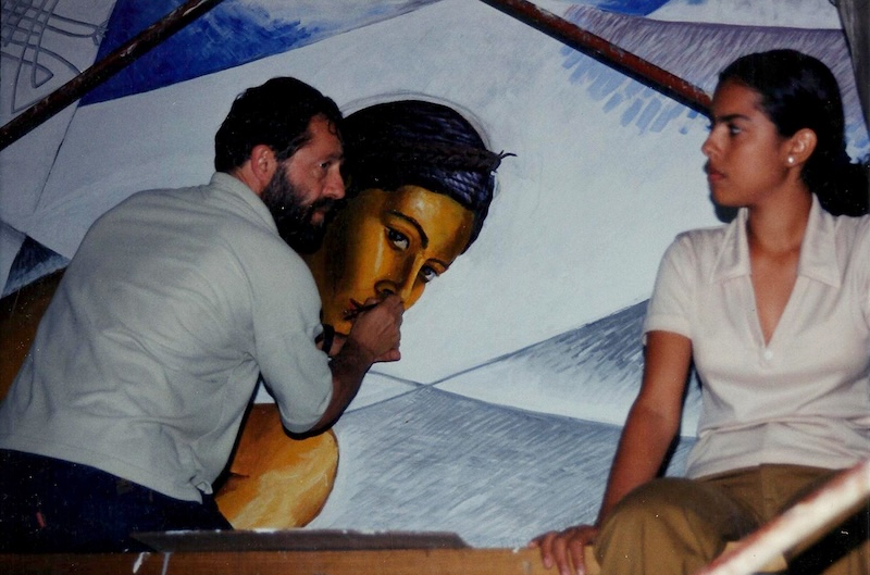 Governatori a Managua, mentre lavora su un murale