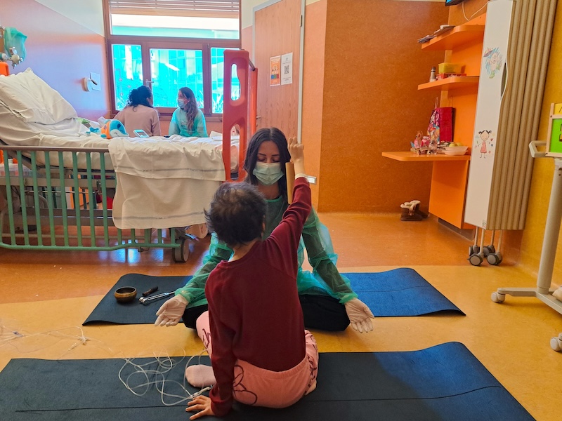 Come funziona. Gli incontri di yoga si tengono due volte a settimana, sotto la guida dell’insegnante Jessica Paganelli. La seduta viene disegnata intorno al singolo bambino, coinvolgendo attivamente anche i familiari: per i più piccini, ad esempio, ci sono gli strumenti musicali (come la campana tibetana, amatissima) e i giochi yogici. Con i più grandicelli vengono condivise le tecniche di meditazione e di respirazione, l’automassaggio e le visualizzazioni guidate, per favorire il rilassamento ed abbassare così ansia e stress durante il difficile momento del ricovero e delle cure