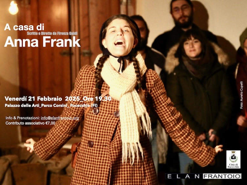 La Sezione Mostre Temporanee del Museo civico Fucecchio, in Piazza Vittorio Veneto 27, si trasformerà nel nascondiglio segreto, grazie allo spettacolo A Casa di Anna Frank, disegno drammaturgia e regia di Firenza Guidi e realizzato con la compagnia permanente di ELAN Frantoio, Questa sera Venerdi 21 Febbraio alle ore 19.30 ci sarà lo spettacolo per la cittadinanza. Chi avrebbe mai immaginato che le semplici parole di una tredicenne avrebbero scandagliato l’immaginario filmico e letterario per decadi a venire? Il diario di Anna Frank, oramai diventato un classico della letteratura, è prima di tutto la testimonianza di un passaggio tra infanzia e adolescenza, tra l’innocenza dell’universo del bambino, in cui il male non esiste e il mondo dilaniato dell’adulto.