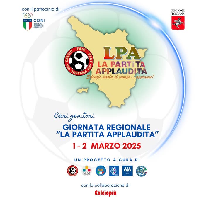Solo applausi per sostenere atleti e atlete in campo. E’ stato approvato all’unanimità del Consiglio Comunale l’ordine del giorno “Cari genitori – giornata regionale La partita applaudita” per supportare il progetto della Federazione Italiana Gioco Calcio – LND Toscana e Associazione Calcio Fair Play Toscana. Un progetto che coinvolge le squadre della categoria under 14 e che nasce per sensibilizzare e promuovere i principi costituzionali dello sport e la formazione alla cittadinanza attraverso lo svolgimento dell’attività sportiva.