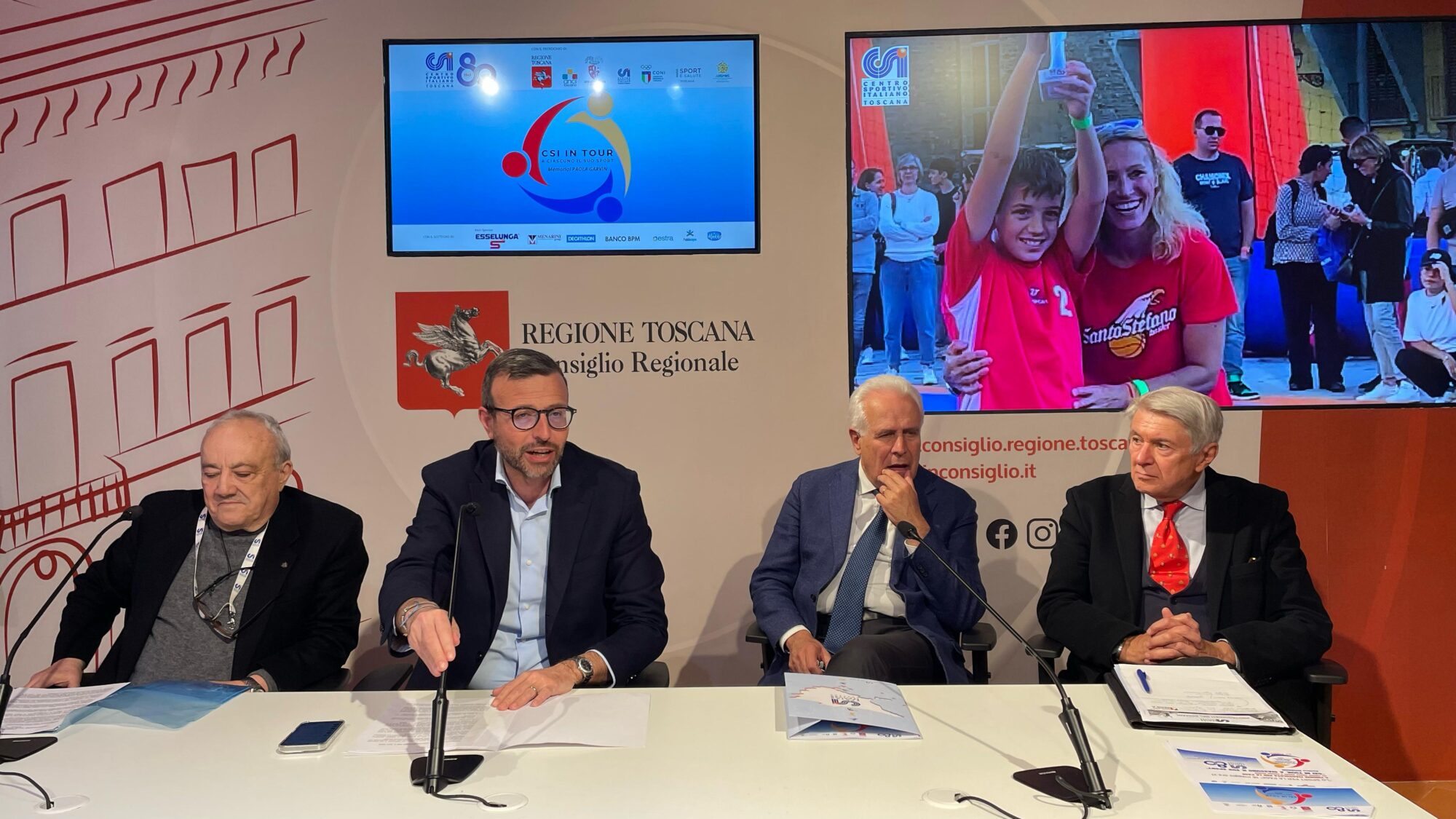 Quaranta tappe che, da aprile a ottobre, andranno ad animare piazze, borghi, centri culturali e sportivi, scuole e parrocchie per coinvolgere migliaia di bambini, ragazzi e famiglie in tornei di diverse discipline sportive, dimostrazioni, esibizioni, attività ludiche, ma anche in convegni e momenti di riflessione. Un lungo tour che si collega alle iniziative per l’80esimo anniversario del CSI e, nell’anno del Giubileo, è dedicato al tema della Pace. A presentarlo questa mattina (giovedì 10 aprile) al Media Center Sassoli di Palazzo del Pegaso, Antonio Mazzeo, presidente Consiglio regionale; Eugenio Giani, presidente della Regione Toscana; Carlo Faraci, presidente CSI Toscana.