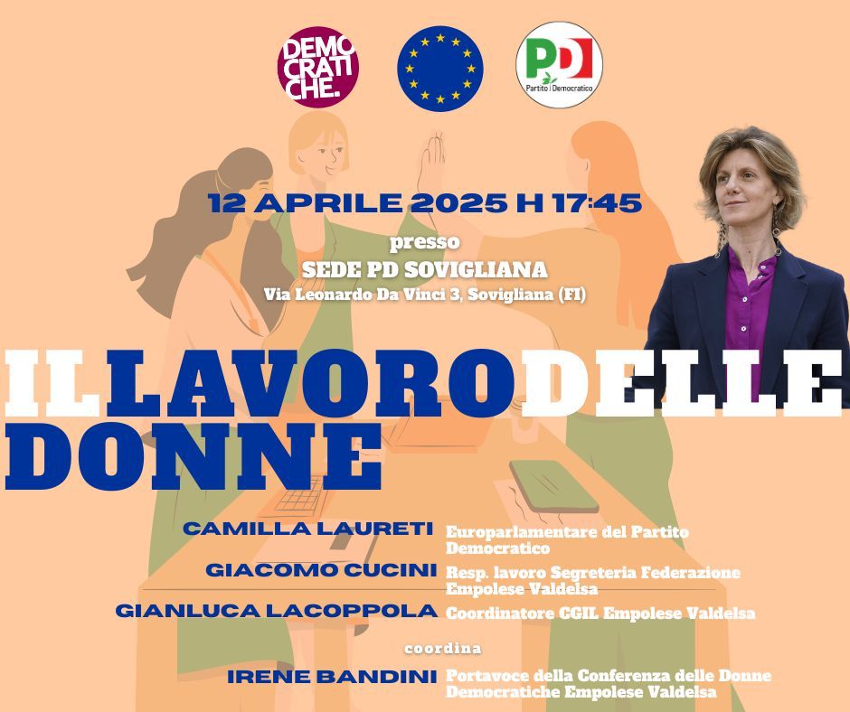 Interlocutori del dibattito saranno l’europarlamentare del Partito democratico Camilla Laureti, Giacomo Cucini, responsabile lavoro in segreteria della Federazione Pd Empolese Valdelsa e Gianluca Lacoppola, coordinatore Cgil Empolese Valdelsa. A coordinare l’iniziativa sarà Irene Bandini, portavoce della Conferenza delle Donne Democratiche Empolese Valdelsa.