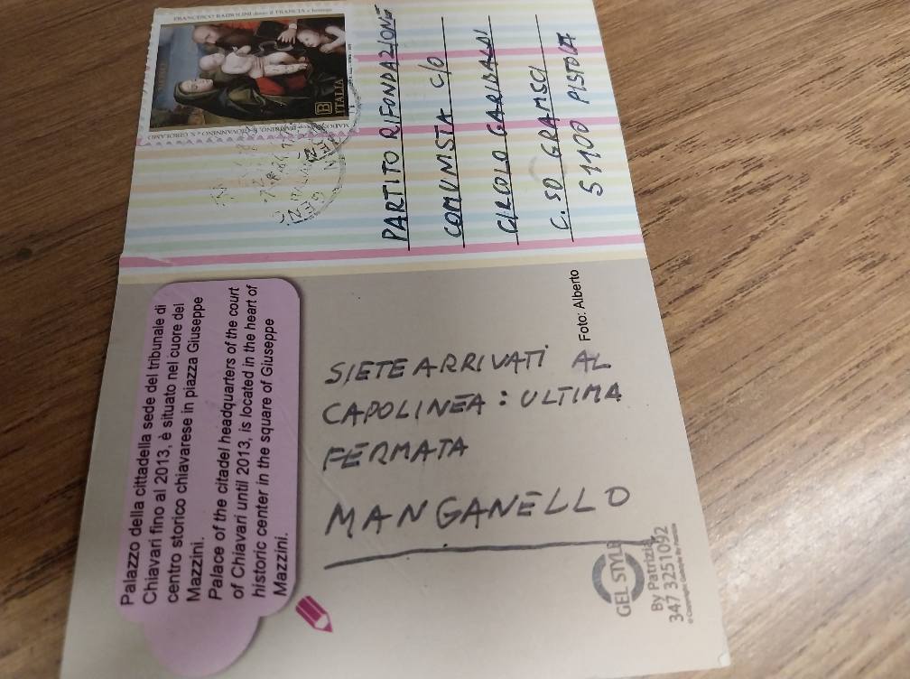 Una cartolina inviata alla sede di Rifondazione Comunista Pistoia con un'intimidazione di chiara marca fascista: "Siete arrivati al capolinea: ultima fermata mantganello!". A denunciarlo con una nota è proprio la Segreteria Provinciale di Rifondazione Comunista: