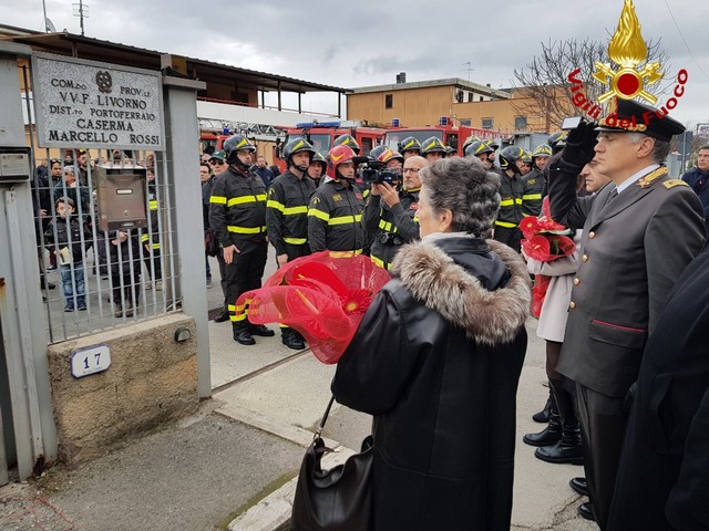 Il Sottosegretario con il Comandante Ing. Alessandro Paola ed il Sindaco di Portoferraio hanno ricordato la figura del Capo Squadra Esperto Marcello Rossi, Istruttore Professionale e persona di grande umanità e professionalità. A conclusione è stata scoperta la targa di intitolazione della sede.