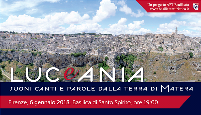 Il 6 gennaio, in tarda mattinata alle ore 12.00, una delegazione del corteo organizzato dall’Opera di Santa Maria del Fiore con in testa i Re Magi farà sosta al presepe monumentale allestito a Santo Spirito. Nel tardo pomeriggio alle ore 19.00 e sempre nella Basilica di Santo Spirito, si terrà lo spettacolo “LUCeANIA. Voci e suoni dal segreto della terra di Matera”. Lo spettacolo si articola come alternanza di musica popolare eseguita da Ambrogio Sparagna accompagnato da alcuni musicisti della sua prestigiosa Orchestra di musica popolare dell’Auditorium di Roma e letture di brani a cura del poeta Davide Rondoni, Direttore artistico e curatore dell’intero spettacolo. Saranno inoltre presenti, in qualità di ospiti di pregio che completeranno la cornice artistica dello spettacolo, la nota attrice di cinema e teatro Iaia Forte e la maggiore interprete di canto popolare toscano, Giuditta Scorcelletti.