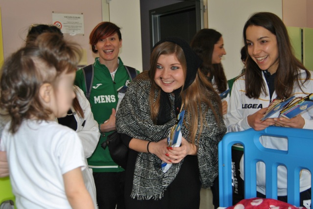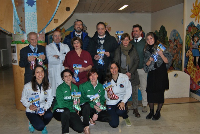 Lo sport continua a far sorridere i piccoli pazienti del Dipartimento Materno Infantile delle Scotte. Gli atleti e i dirigenti della Polisportiva Mens Sana 1871, insieme al presidente Antonio Saccone, hanno consegnato le calze della Befana con i vari dolciumi, donate dal supermercato Pam di Siena, ai bambini meno fortunati che stanno trascorrendo questo periodo in ospedale. Presenti in rappresentanza di Pam Filippo Granello e Fabrizio Becherini, per il comune di Siena l’assessore allo sport Leonardo Tafani. Ad accoglierli, oltre al personale del dipartimento, il professor Salvatore Grosso, direttore UOC Pediatria Azienda ospedaliero-universitaria Senese, e la coordinatrice infermieristica Giuliana Masiero.