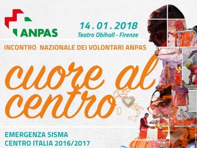 Il giorno seguente invece l’evento organizzato da Anpas nazionale vedrà la consegna degli attestati ai volontari intervenuti ad Amatrice e nei molti altri Comuni dell’area colpita in provincia di Rieti. Si svolgerà infatti domenica 14 gennaio 2018, a Firenze, presso il teatro Obihall (via Fabrizio De Andrè) l'incontro nazionale dei volontari Anpas intervenuti in Centro Italia in seguito alle emergenze sisma 2016-2017. “Dalla provincia di Pistoia-afferma Fabrizio Giordano, responsabile della protezione civile della zona pistoiese- i volontari che riceveranno l’attestato saranno una trentina, a testimonianza della importante presenza che i nostri ragazzi sono in grado di garantire ogni volta che veniamo chiamati a dare il nostro contributo. La città può esserne orgogliosa”.