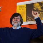 - Jacopo Fo con alle spalle l’opera dedicata ai suoi genitori