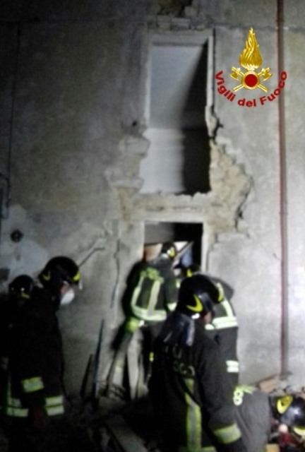 I Vigili del Fuoco stanno scavando a mano e hanno raggiunto la persona e ci stanno parlando.