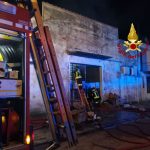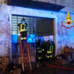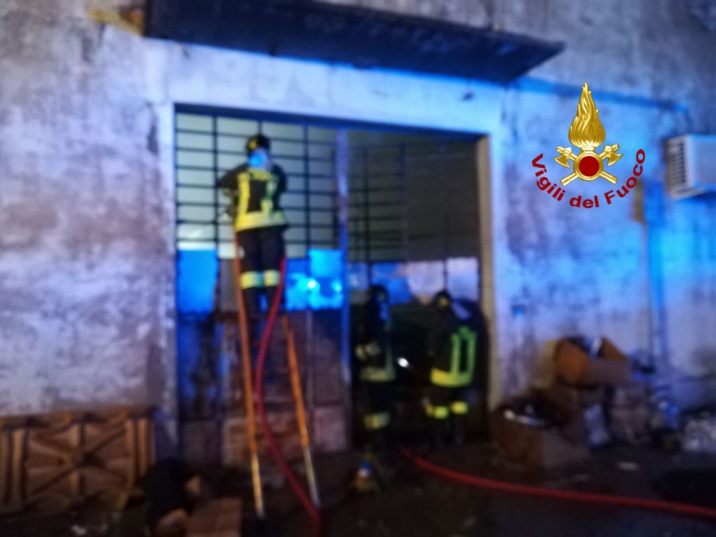 Incendio in un magazzino tessile in via dello Sprone a Grignano di Prato. Sul posto i vigili del fuoco del comando di Prato.