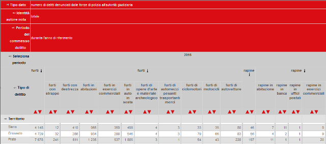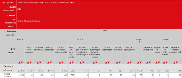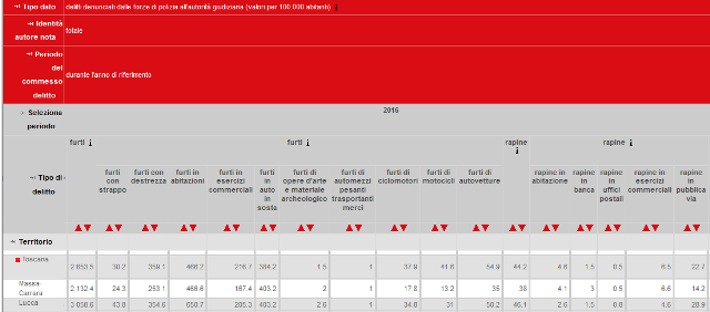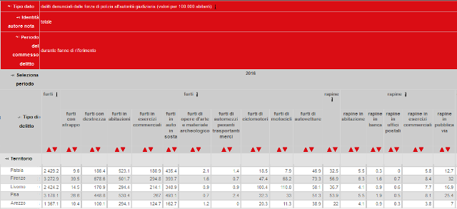 Le parole del direttore di Confcommercio Pisa si riferiscono ai dati ufficiali pubblicati dall'Istat proprio questa mattina, sui delitti denunciati dalle forze di polizia all'autorità giudiziaria nell'anno 2016. Analizzando la Toscana e il dato provinciale relativo a furti e rapine, Pisa se la gioca in un drammatico testa a testa con Firenze per il primato toscano dei furti.