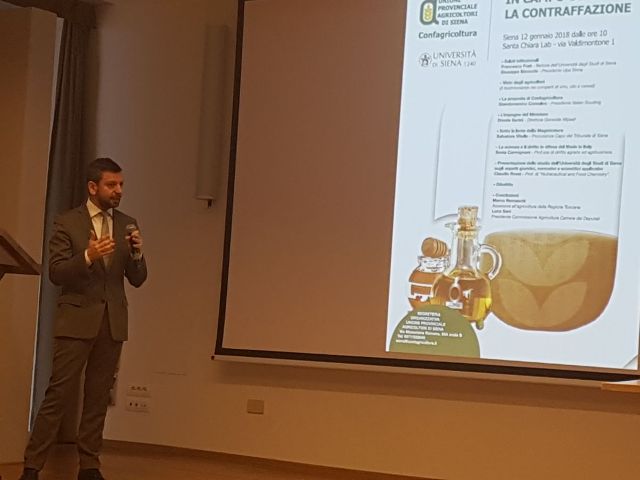 Sulla difficoltà delle indagini attinenti ai reati di contraffazione agroalimentare è intervenuto Aldo Natalini, Sostituto Procuratore della Repubblica presso il Tribunale di Siena: «il reato è invisibile, impercettibile e tendenzialmente seriale e il consumatore è quasi sempre inconsapevole per questo è anche un reato a vittima muta proprio come la corruzione; nel corso degli anni le frodi più sofisticate si sono rivelate innocue dal punto di vista salutistico e questo ha consentito ai truffatori di imperversare creando una sottovalutazione giudiziaria». Nel corso del convegno anche la testimonianza di Giandomenico Consalvo, presidente di Italian Sounding, che ha avviato un’intensa collaborazione con le autorità tedesche contro la contraffazione; «il modello tedesco – ha sottolineato - è da imitare perché mette al centro il consumatore e le corrette informazioni per il consumatore che deve scegliere con consapevolezza quello che compra». Per la Regione Toscana è invece intervenuto Roberto Scalacci, direttore dell’Ufficio Agricoltura, che ha messo l’accento sulla necessità della tutela d’origine di un prodotto agroalimentare soprattutto in Toscana «dove, secondo un recente studio, l’83% dei turisti è attirato dal cibo».