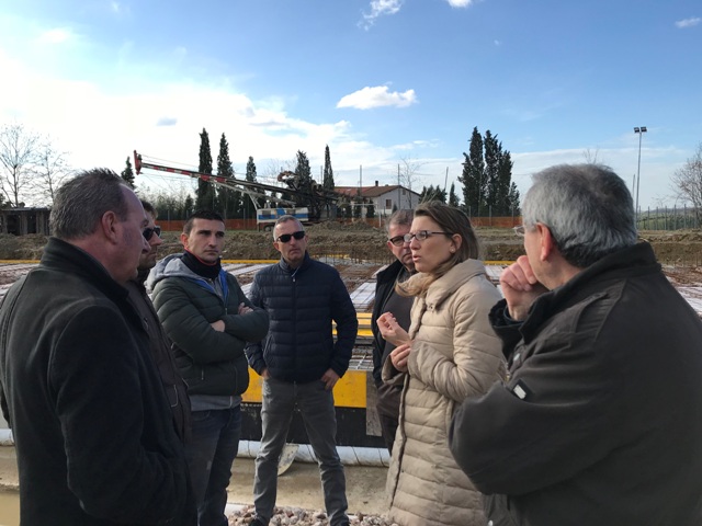 Nel corso della visita al cantiere è stato ricostruito il percorso compiuto dall’inizio dei lavori. Si sta concludendo la prima fase dell’intervento, quella che riguarda le fondazioni. In seguito alla normativa antisismica è stato necessario provvedere ai nuovi adempimenti, tra i quali le prove di carico fatte sui pali di fondazione a garanzia della resistenza degli stessi. Un’operazione che ha rallentato i tempi dovendo aspettare la maturazione del getto del palo.