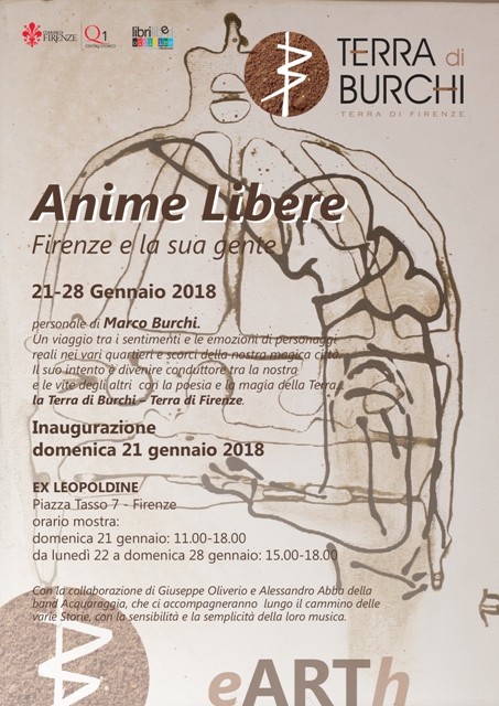 Presso il complesso delle ex Leopoldine, fondate dal granduca Leopoldo II di Lorena, in piazza Tasso, dal 21 al 28 gennaio avrà luogo la personale di Marco Burchi, Anime Libere, Firenze e la sua gente, una mostra, organizzata in collaborazione con il Quartiere 1 e con l’Associazione Culturale Libri Liberi, dove l’artista esporrà circa 30 opere realizzate utilizzando esclusivamente la terra di Firenze. La mostra è stata presentata il Palazzo Vecchio dal presidente della Commissione cultura del quartiere 1.