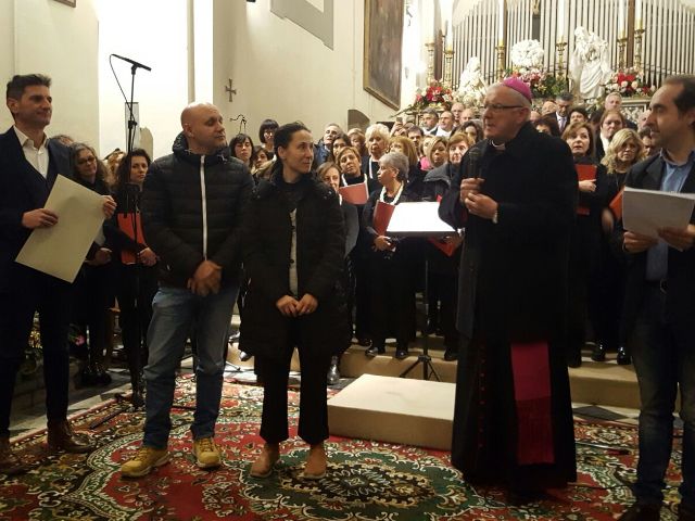“Abbiamo pensato che fosse giusto che la consegna del Testimonium, ovvero la pergamena che attesta il completamento del pellegrinaggio, fosse fatto pubblicamente. Ecco che durante la Rassegna regionale delle Corali di Terre di Presepi a Pescia, ho invitato il vescovo mons. Roberto Filippini ad autenticarla con la propria firma e a consegnarla a Catia e Calogero" – spiega Fabrizio Mandorlini, portavoce di Terre di Presepi.