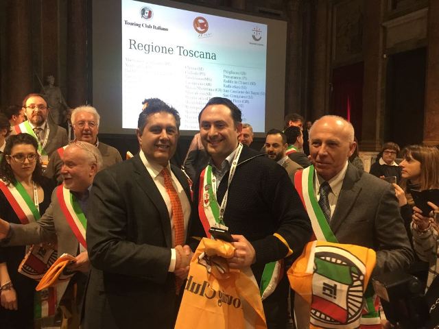 Quella di oggi è stata una giornata di grande soddisfazione per i due Comuni della Valdera, Casciana Terme Lari e Peccioli, che a Genova hanno ricevuto la conferma da parte di Touring Club del riconoscimento di Bandiera Arancione, in occasione della cerimonia di assegnazione del marchio turistico-ambientale rivolto ai piccoli Comuni italiani di eccellenza; una cerimonia speciale,  quella di questo 2018, in cui è stato festeggiato anche l’anniversario di fondazione dell’iniziativa, nata proprio in Liguria ormai venti anni fa. A ritirare il riconoscimento per Casciana Terme Lari, il Sindaco Mirko Terreni e l’Assessore al Turismo Paolo Coppini, e per Peccioli, il Sindaco Renzo Macelloni. Il marchio in questi venti anni è stato conferito o confermato soltanto all’8% delle realtà territoriali che hanno presentato la loro candidatura, con l’obiettivo di premiare, incentivare e promuovere in Italia uno sviluppo turistico sostenibile. E infatti i Comuni “candidati” sono stati oggetto di accurate analisi e verifiche finalizzate a riscontare nei vari territori la sussistenza di un’identità culturale, artistica e architettonica consolidata, la presenza di un sistema di offerta turistica e di accoglienza ben organizzato e di attività di sviluppo sostenibile.