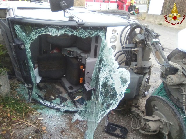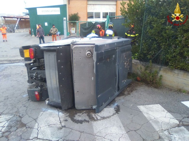 È rimasto incastrato nella spazzatrice che stava guidando dopo che il mezzo si è ribaltato su di un fianco. Sono dovuti intervenire i vigili del fuoco di Grosseto per un incidente avvenuto a Follonica, in via Amendola. Il parabrezza del mezzo è stato tagliato dai pompieri per estrarre l'operaio e consegnarlo ai sanitari del 118. Presente per i rilievi la polizia municipale.