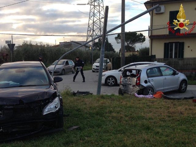 Due auto si sono scontrate a Latignano di Cascina, all'incrocio tra via Rotina e via Piccina, nella mattina di oggi, martedì 23 gennaio. Una Opel Astra è finita contro una Seat Mii, quest'ultima ha finito la propria corsa contro un palo dell'illuminazione pubblica. A bordo dell'auto, alimentata a metano, c'erano madre e due bambini. La famiglia è stata soccorsa dai sanitari del 118. Presenti sul posto anche i vigili del fuoco del locale distaccamento che hanno messo in sicurezza le autovetture e la parte elettrica del palo dell’illuminazione pubblica. Per i rilievi era presente la polizia municipale di Cascina.