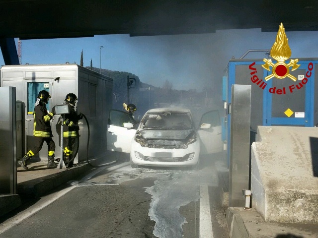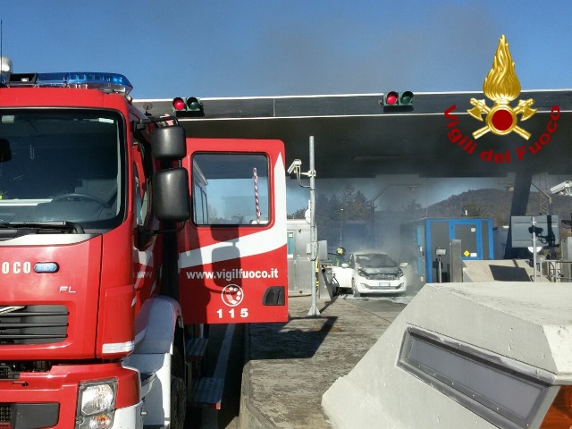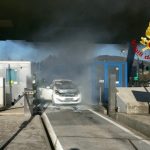Auto a gpl va a fuoco al casello autostradale dell'A1