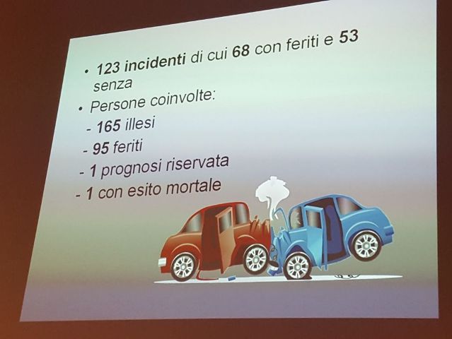 Nel 2017 gli incidenti stradali sono stati 123, con 262 persone coinvolte (1 solo con esito mortale, quello dell'anziano investito a La Serra a giugno 2017). Tra le violazioni maggiormente riscontrate c'è l'omessa revisione del veicolo, 293 auto, il 37,8% in meno rispetto all'anno precedente, mentre l'omessa presentazione dei documenti è passata dalle 139 del 2016 alle 109. Cala di poco il numero di persone fermate e trovate senza le cinture allacciate, dalle 55 del 2016 si passa alle 50 del 2017, mentre cala sensibilmente il numero delle sanzioni per coloro che vengono sorpresi al cellulare mentre sono alla guida: dalle 82 multe dell'anno scorso il dato è sceso a 50.