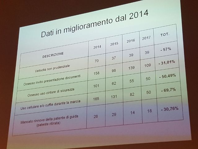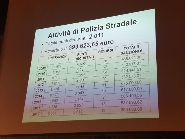 Rispetto al 2016 sono diminuiti del 24,3% i punti decurtati (dai 2.657 dell’anno precedente, nell’anno appena concluso la cifra si è assestata sui 2.011), mentre dal 2009 il calo è stato significativo: -70%. Si riducono del 18,7% anche le infrazioni, con un calo delle sanzioni di oltre 144mila euro (393mila euro contro i 538mila del 2016).