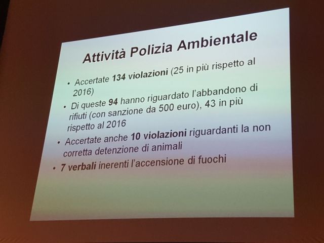 Incrementano molto le sanzioni per reati di tipo ambientale. Rispetto al 2016 c’è stato un aumento del 15,7% (134 violazioni), di queste ben 94 hanno riguardato l'abbandono di rifiuti con la conseguente sanzione da 500 euro, mentre nel 2014 erano state 57 (+39,3%). Spiega Pancanti: "Non basta uno scontrino del supermercato per risalire all'autore del gesto, ma molti indizi possono essere comunque utili. Parlo di visite mediche buttate, la pagella del figlio o la matrice degli assegni. Tutti dettagli essenziali per le nostre indagini. Non ci è mai stata contestata una sanzione".