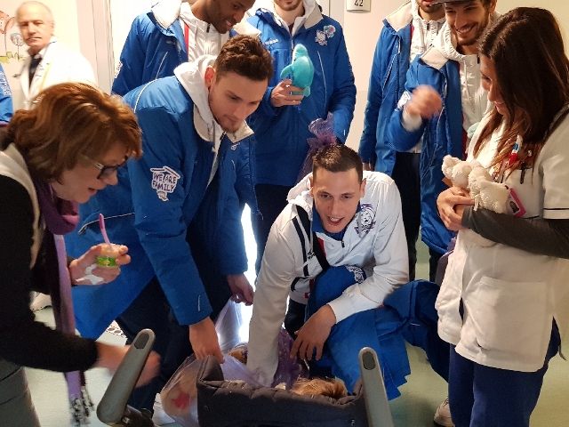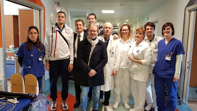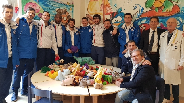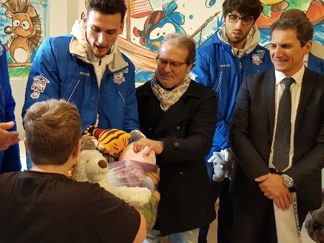 I giocatori, insieme coach Andrea Niccolai, al vice Fabio Farina e al presidente del Quartiere 2 Michele Pierguidi, hanno visitato il reparto accompagnati dal direttore del Presidio, Francesco Converti e da Paolo Bacciotti, della Fondazione Tommasino Bacciotti.