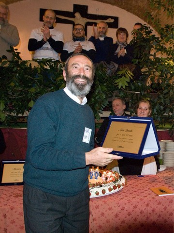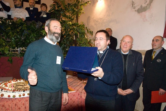 Siccome la cena per i suoi 60 anni era stata organizzata in un carcere, allora don Donato Agostinelli, parroco di Cerreto Guidi, ha raccontato di quella volta che un poliziotto stava per denunciarlo per procurato allarme, perché, all’aeroporto di Fiumicino, temendo di aver perso un piccolo mobile comprato in Uganda, salì sul nastro trasportatore per andarlo a prendere di persona nell’area bagagli, facendo suonare tutti gli allarmi che, in questi tempi di terrorismo, vengono usati per tenere sotto controllo le aree sensibili degli scali.