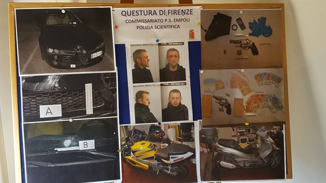 Uno è stato arrestato da una volante del Commissariato di Montecatini, mentre l'altro è stato poco dopo intercettato, inseguito ed arrestato da personale della Squadra Mobile di Firenze e del Commissariato di Empoli. In totale sono state utilizzate nell'operazione 5 vetture della polizia.