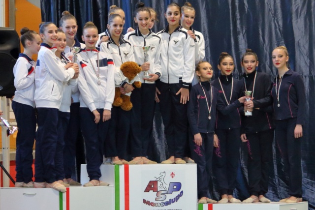 Divisione LB – Categoria Junior/Senior – Martina Alfaroli, Zoe Cambioni, Caterina Distante, Gaia Fulignati, Emma Scatragli - 1° classificate con punteggio 26,100.