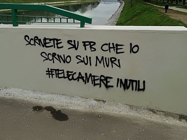 "Scrivete su Fb che io scrivo sui muri": lo sprezzante writer è tornato a farsi vedere sulla rinnovata passerella dell'Isolotto, il passaggio pedonale che permette di attraversare da una parte all'altra dell'Arno congiungendo l'omonimo quartiere con il parco delle Cascine. Solo una settimana fa pubblicavamo un articolo dallo stesso tono: passerella ancora ostaggio dei vandali, dove erano sotto accusa gli Angeli del Bello, 'colpevoli' di ripulire i muri degradati di Firenze. Adesso siamo ancora al punto di partenza, e stavolta l'anonimo graffitaro se la rifà con i gruppi Facebook dove i cittadini esprimono le loro opinioni sullo stato della città e sulle opere dell'amministrazione comunale.