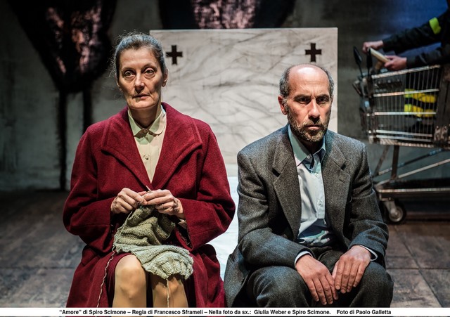 Con Amore, la compagnia Scimone Sframeli prosegue sul percorso drammaturgico ai bordi dell’umanità, all’interno di non luoghi, dove i personaggi non hanno nome e sono “tutti vecchietti”. Un altro tassello della loro ricerca “verso l’essenza del teatro, non perdendo mai il legame fra gli attori, il testo e il pubblico”.