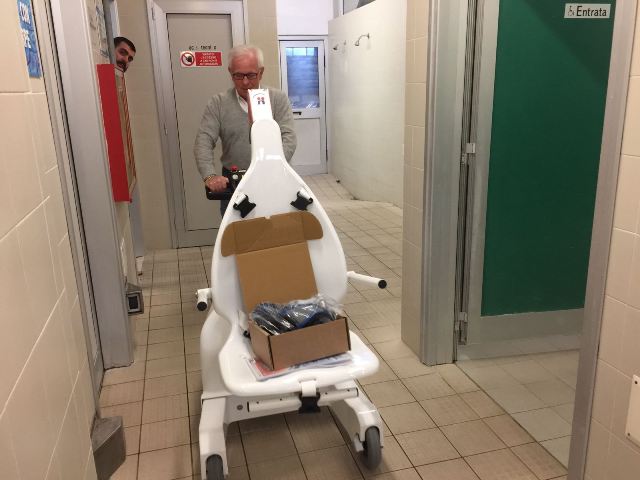 l’ingresso in acqua in tutte le vasche dell’impianto. In tal modo le persone con qualsiasi tipo di difficoltà hanno la possibilità di partecipare senza nessun ostacolo ad ogni attività in acqua organizzata dalla società. Tale strumento permette, altresì, di poter gestire in tutti gli ambienti dell’impianto (dagli spogliatoi alla vasca) le persone con problemi di disabilità.