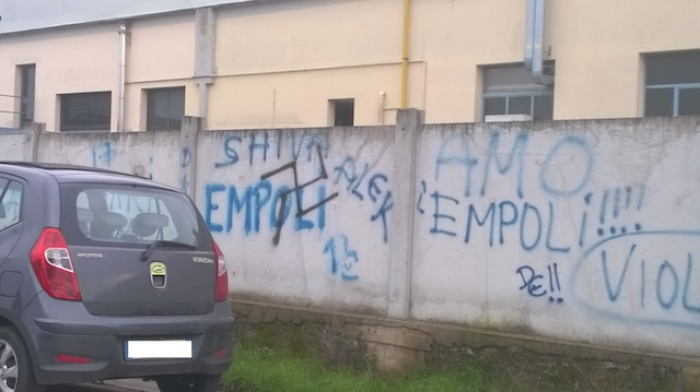 Una svastica al Terrafino fa di nuovo scattare l'allarme a Empoli. Un lettore ha segnalato a gonews la 'comparsa' recente di una svastica su un muro nella zona industriale a sud-ovest di Empoli. Il muro solitamente ospita le scritte goliardiche dei tifosi e nulla più, ma da poco si sarebbe aggiunto un graffito sospetto.