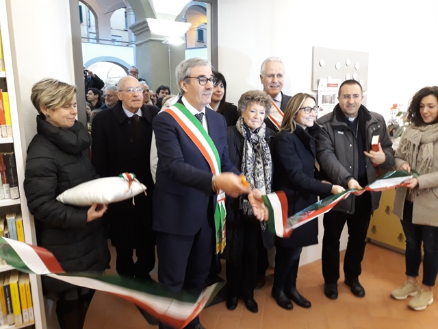 Nuovi locali e nuova vita per la Mario Luzi a San Miniato. Oggi, giovedì 1 febbraio, è stata inaugurata la nuova sede della Biblioteca Comunale, che si è spostata di pochi metri ma è totalmente diversa rispetto a qualche mese fa. Il sindaco Vittorio Gabbanini, il suo vice con delega alla cultura Chiara Rossi e la giunta comunale hanno partecipato al taglio del nastro assieme al presidente del Consiglio regionale Eugenio Giani e alla scrittrice Dacia Maraini. Presenti anche Giovan Battista Mattii della Fondazione CRSM e il Monsignor Andrea Migliavacca che ha benedetto i locali.