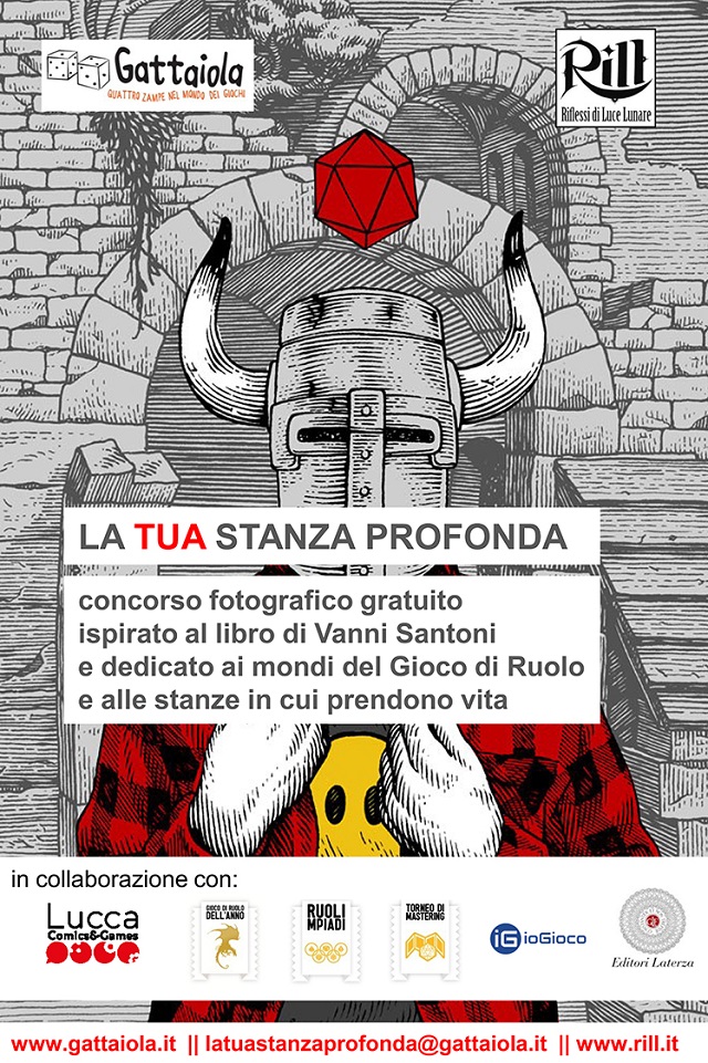 Gattaiola.it, blog di cultura ludica, formazione ludica e dintorni, insieme a RiLL - Riflessi di Luce Lunare, bandisce per il 2018 il concorso fotografico gratuito “La TUA stanza profonda” ispirato al libro di Vanni Santoni “La stanza profonda”, ed. Laterza, 2017.