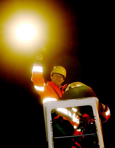 Il sindaco Dario Nardella è salito oggi su una piattaforma aerea per sostituire una delle ultime vecchie lampade dei lampioni di viale Guidoni, dove in questi giorni sarà ultimato il passaggio all'illuminazione a led di tutta la strada.