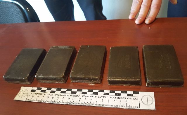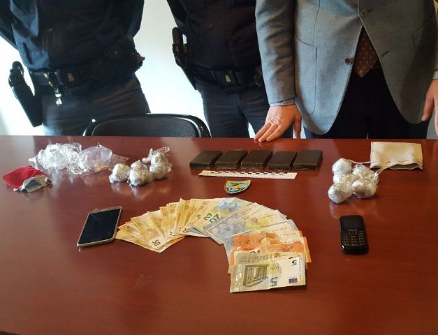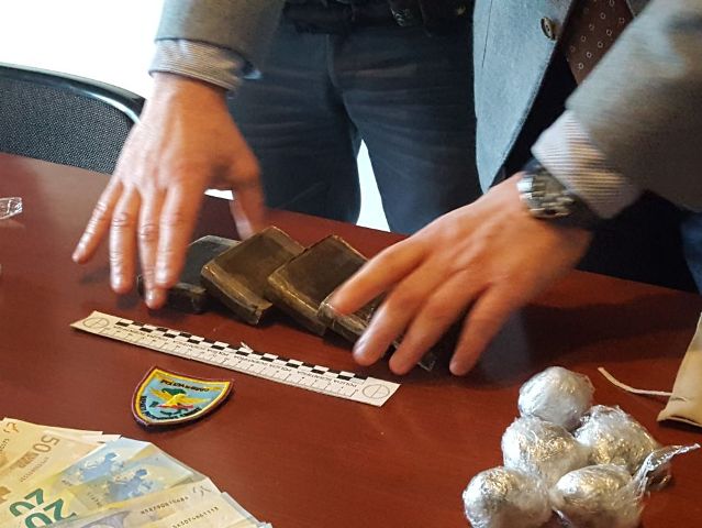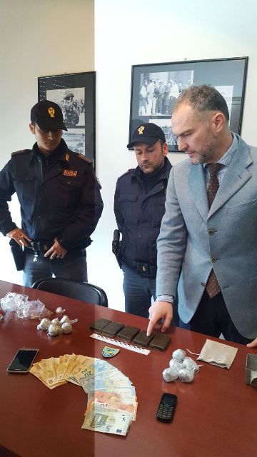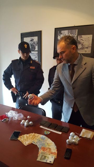 È stato intercettato mentre portava in bicicletta mezzo kg di hashish 'mascherato' con del deodorante per non farne avvertire l'odore dai cani antidroga, 10 confezioni di marijuana da 10 grammi ciascuna, 3 palline di cocaina, 1.200 euro in contanti e due cellulari.