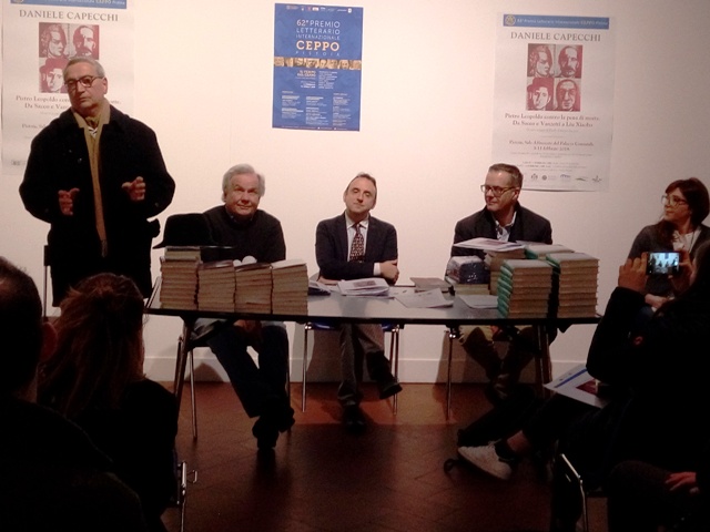 Dal 3 all’11 febbraio si svolge la mostra nelle Sale Affrescate con 12 dipinti di Daniele Capecchi, a cura di Paolo Fabrizio Iacuzzi: “Pietro Leopoldo contro la pena di morte. Da Sacco e Vanzetti a Liu Xiaobo”. Si inaugura sabato 3 febbraio 2018, alle ore 17,30, nelle Sale Affrescate, grazie alla collaborazione del 62° Premio Ceppo con il Comune di Pistoia. La mostra si svolge con il seguente orario: dal martedì al venerdì (ore 10.00-14.00); sabato e domenica (ore 10.00-18.00), lunedì chiuso. Saranno presenti: Alessandro Sabella (Assessore alle Politiche giovanili del Comune di Pistoia), Paolo Fabrizio Iacuzzi (Presidente del Premio Ceppo e curatore della mostra), Maurizio Tuci (critico). In particolare verranno eseguite  letture dalla Ballata dal Carcere di Reading di Oscar Wilde e di una poesia scritta da Iacuzzi, per la prima edizione della Festa della Toscana, su un poeta condannato a morte, ritratto da Daniele Capecchi e presente in mostra.